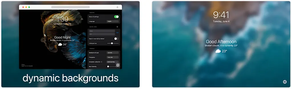 Het is volledig gratis, respecteert je privacy en biedt een enorme bibliotheek met achtergronden van Unsplash en Giphy.