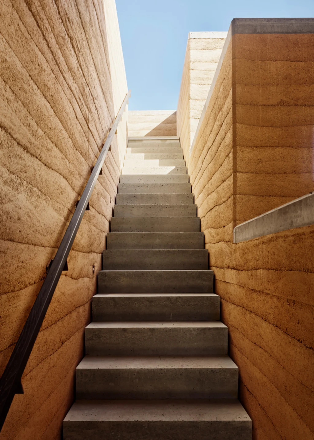 “Ik denk dat het gaat om een ​​herontwaken”, zegt Tuckey over het nieuwe tijdperk van de architectuur van de geramde aarde, en van het afstappen van meer koolstofintensieve bouwmaterialen. Zijn hoop is dat “als je naar een stapel gloednieuwe stenen kijkt, je er niet alleen naar kijkt met dollartekens in gedachten, maar ook met koolstoftekens.”
