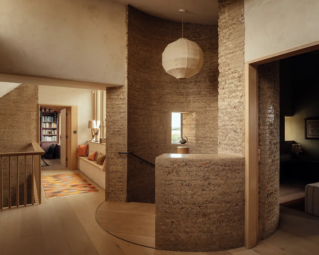 Op het Engelse platteland is – letterlijk – een nieuw project uit het landschap ontstaan. Rammed Earth House, een woonwijk van de in Londen gevestigde Tuckey Design Studio, combineert gerenoveerde bakstenen gebouwen met nieuwe geramde aardestructuren, waarbij gebruik wordt gemaakt van de kleigrond van het land waarop het staat. “Het materiaal ligt al onder je voeten, en het gaat niet gepaard met alle koolstofbagage die andere (bouw)materialen met zich meebrengen”, zegt studio-oprichter Jonathan Tuckey.