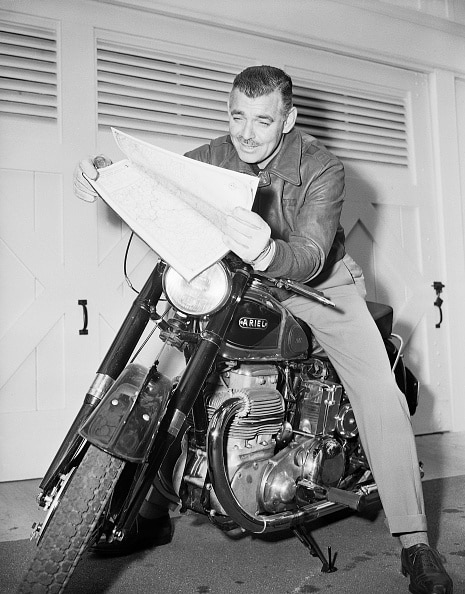 Hoewel dit een geposeerde persfoto lijkt te zijn, reed Clark Gable inderdaad op een motorfiets Harley Davidson RL uit 1934 om precies te zijn.