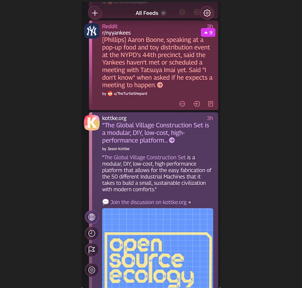 Iconenfabriek Tapijt: Als je het gevoel hebt dat je opgebrand bent door sociale media, kun je met Tapestry een chronologische feed van je favoriete internetinhoudsbronnen samenstellen. Dit kunnen publicaties, YouTube-kanalen, Reddit-forums, Bluesky-accounts en zelfs zijn aangepaste bronnen zoals een Gmail-inbox. (iOS, Mac)