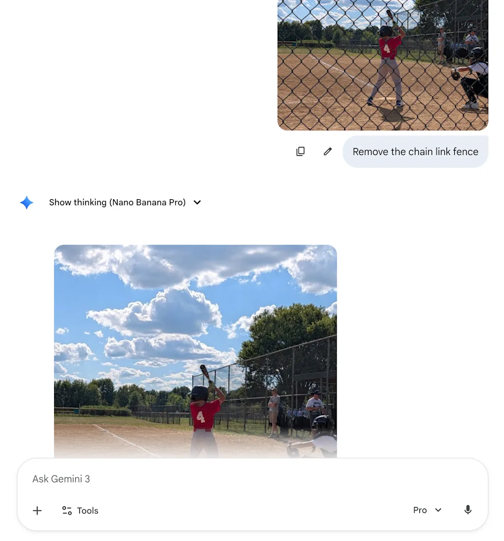 Google Tweelingen: De AI-assistent van Google is niet nieuw, maar wel ingebouwd “Nano-banaan“Het tekst-naar-afbeelding-model dat dit jaar uitkwam, zou op zichzelf al een geweldige app zijn. Begin met het uploaden van een afbeelding en vraag vervolgens om deze in een andere visuele stijl weer te geven, objecten te verwijderen (inclusief hekjes van kettingschakels), in te zoomen en te verbeteren, of meer afbeeldingen aan de scène toe te voegen. Je kunt zelfs rond delen van de afbeelding tekenen om te laten zien waar de bewerkingen moeten plaatsvinden. (iOS, Android, internet)