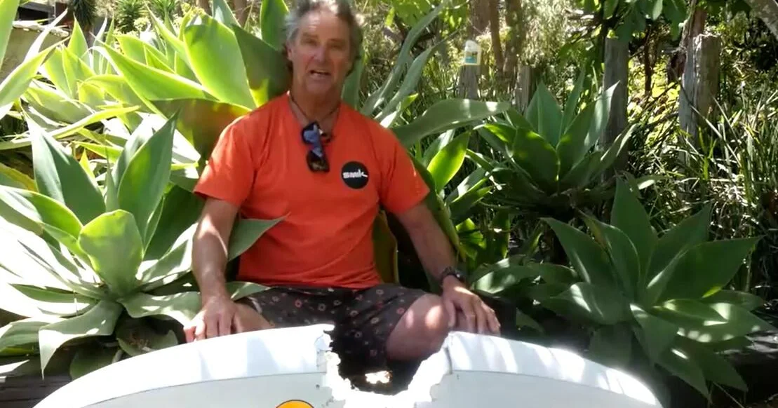 Een camera van de surfmediawebsite swellnet.com legde het moment vast waarop de haai schijnbaar uit het niets kwam en de 61-jarige McDonald van zijn board sloeg.