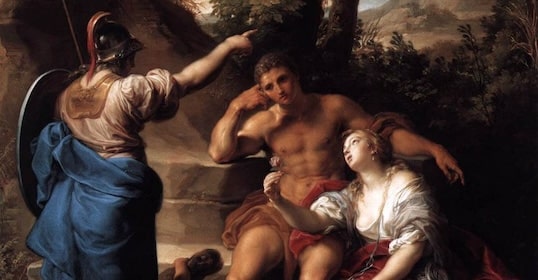 “Mijn beste Hercules,” zegt ze, “ik merk dat je zeer verdeeld bent in je gedachten over de manier van leven die je zou moeten kiezen; wees mijn vriend en volg mij; ik zal je naar het bezit van plezier leiden, en buiten het bereik van pijn, en je verwijderen van al het lawaai en de onrust van het zakendoen. De zaken van vrede of oorlog zullen je niet kunnen storen. Je hele taak zal zijn om je leven gemakkelijk te maken en om elk zintuig te vermaken met de juiste bevrediging. Weelderige tafels, rozenbedden, wolken parfums, muziekconcerten, menigten schoonheden staan allemaal klaar om je te ontvangen in deze regio van geneugten, deze wereld van plezier, en neem voor altijd afscheid van zorg, pijn, zaken.
