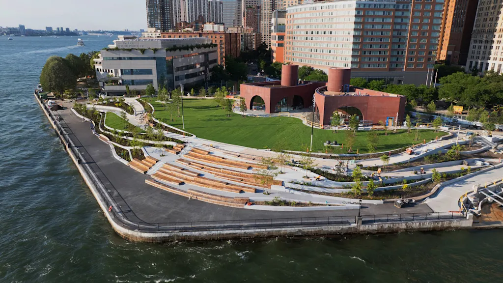 Hoewel de overstromingsbeschermingselementen van het park het een voorbeeld maken om te volgen, is het ook een ruimte die is ontworpen voor mensen om te gebruiken. Een nieuwe gemeenschappelijke ruimte en een paviljoen maken plaats voor evenementen, en een inheemse tuin brengt extra groene ruimte in een dichtbevolkt deel van de stad. Met uitzicht op de eerste rij op het Vrijheidsbeeld kan de natuurlijke aantrekkingskracht van de locatie nu opwegen tegen het natuurlijke risico.