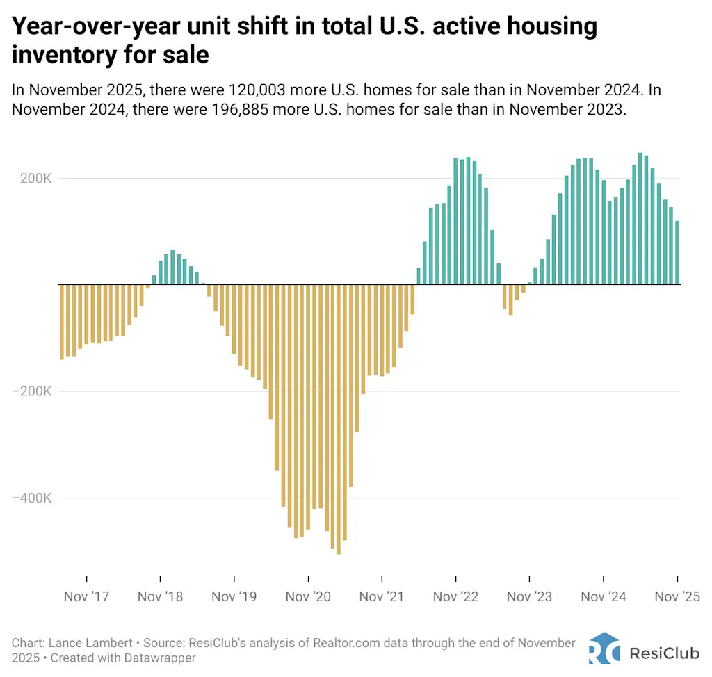 In november 2025 stonden er +120.003 meer Amerikaanse huizen te koop dan in november 2024.