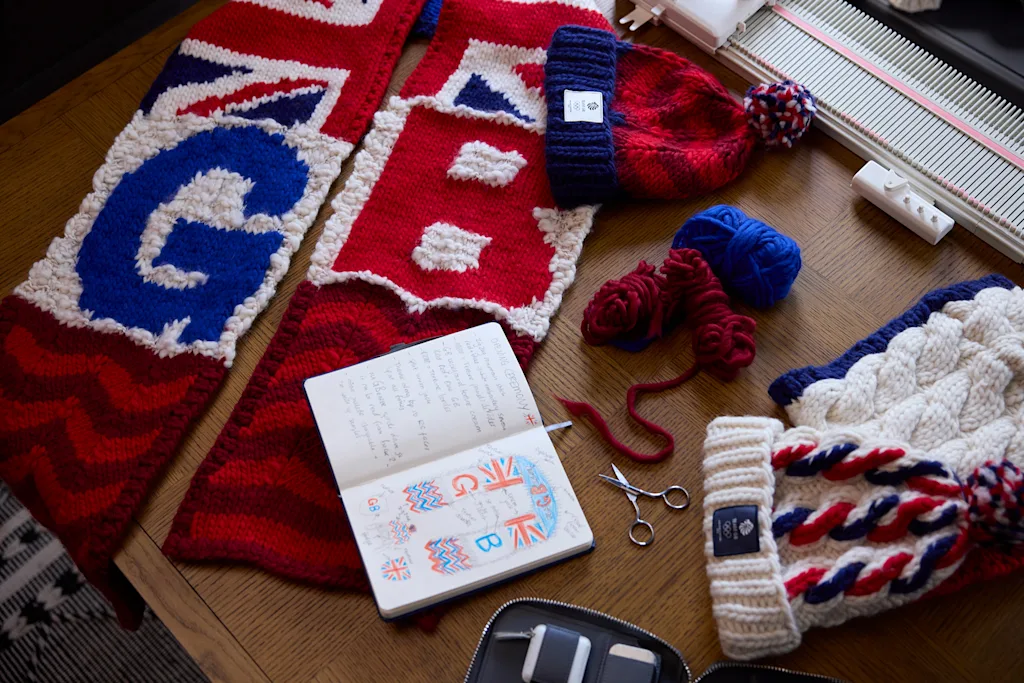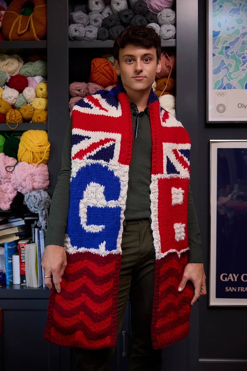 Dit jaar zal Daley’s werk als officieel Olympisch kledingstuk gedragen worden door de vaandeldragers van zijn thuisploeg, Groot-Brittannië. Daley werkte samen met het Britse kledingmerk Ben Sherman (dat ook de looks voor de openings- en slotceremonie van Groot-Brittannië creëert) aan een serie gebreide kleding geïnspireerd op de vlag van zijn land. De dikke sjaals, hoeden en snoods hebben dezelfde charmante kwaliteit als Daley’s zwembadprojecten die eerder de harten van kijkers over de hele wereld veroverden.