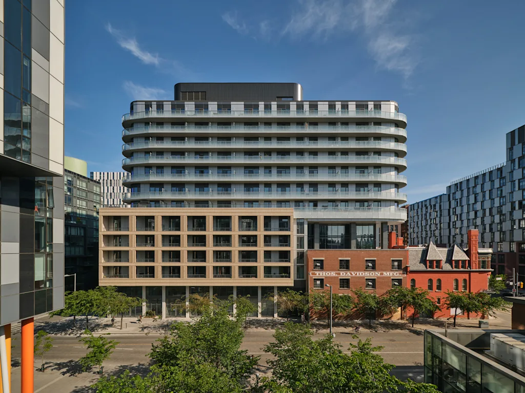 Gelegen in een deel van de stad dat ooit de uiterwaarden van de rivier de Don was, en daarvoor duizenden jaren lang het voorouderlijk land en jachtgebied voor de inheemse bevolking was, heeft de locatie een diepe weerklank voor de gemeenschap. De ontwerpers van het project, waaronder een inheems architectenbureau met het hoofdkantoor in een nabijgelegen First Nation, hebben veel moeite gedaan om die verbindingen in de look en feel van het project te leggen.