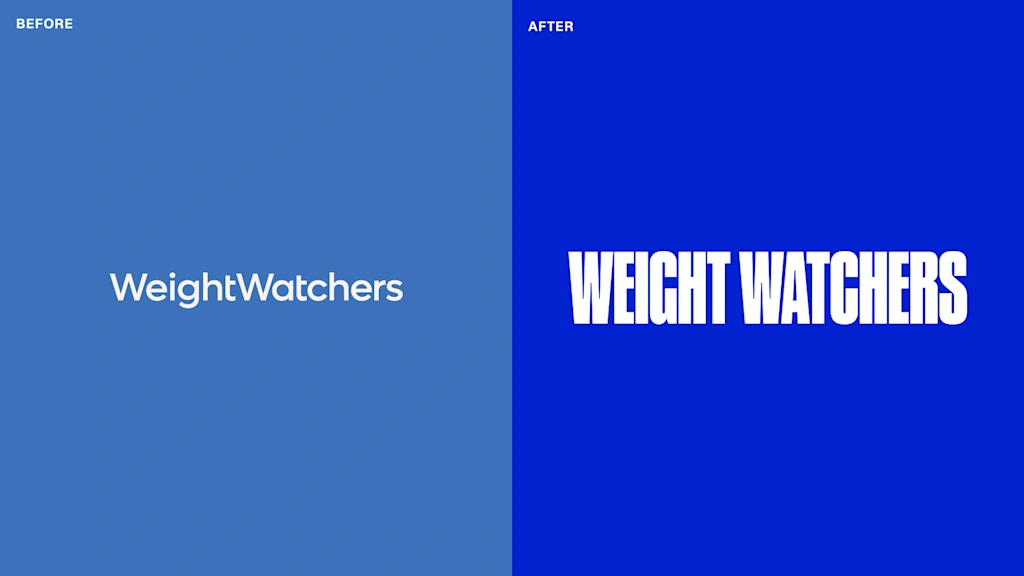 Een van de grote veranderingen van mevrouw en meneer was het terugkeren naar een hoofdletterlettertype voor het bedrijf. “Weight Watchers was in de loop der jaren overgestapt op kleine letters”, zegt Daniel. “We vinden het geweldig dat de oorsprong ligt in dit echt trotse, slanke, hoge, verenigende hoofdletterlettertype. De eenvoud ervan sprak ons echt aan.”