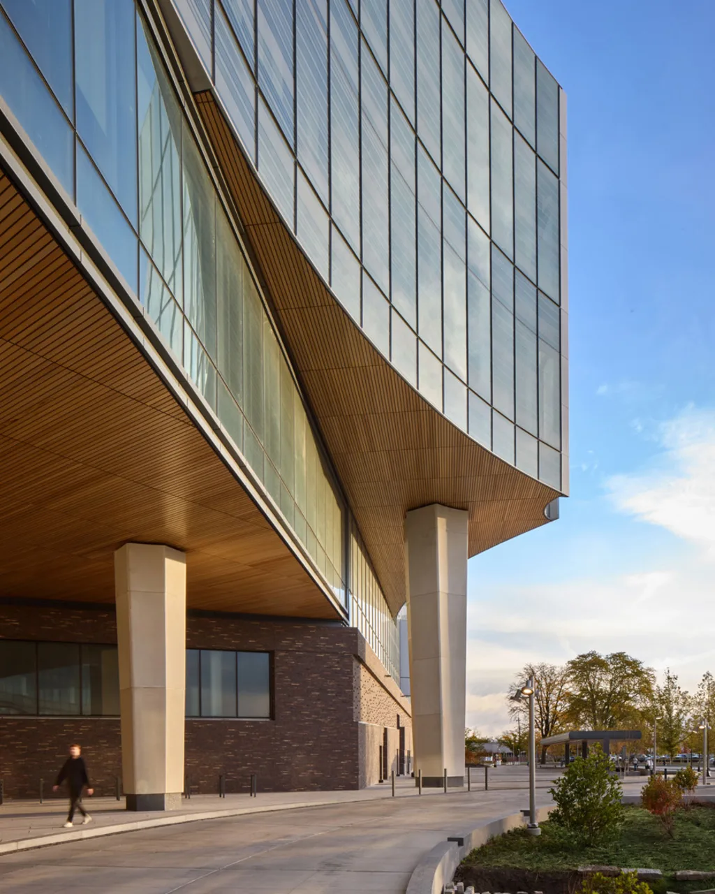 “Het is het meest horizontaal en verticaal geïntegreerde gebouw dat ik ken”, zegt Craig Dykers, medeoprichter van Snøhetta en architect van het gebouw. Zijn bedrijf creëerde ook het masterplan voor de campus dat het bedrijfslandschap van Ford opnieuw heeft vormgegeven.