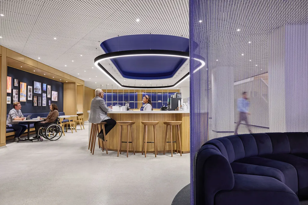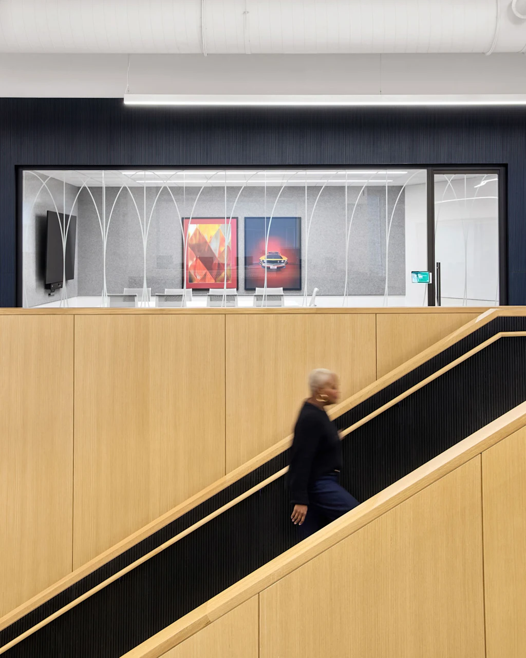 Deze ruimte is toegankelijk voor iedere Ford-werknemer, zelfs voor degenen die niet in het hoofdkantoor werken. Jennifer Kolstad, global design en brand director bij Ford Land, zegt dat het deel uitmaakt van de inspanningen van het bedrijf om zijn wereldwijde vastgoedportfolio te heroverwegen en meer ruimtes toegankelijker te maken voor verschillende soorten werk, of het nu gaat om een ​​lunchbijeenkomst of een head-down cram-sessie in een privécabine. Het staat ver af van de bureaucultuur die lang bij Ford heerste, zegt ze.