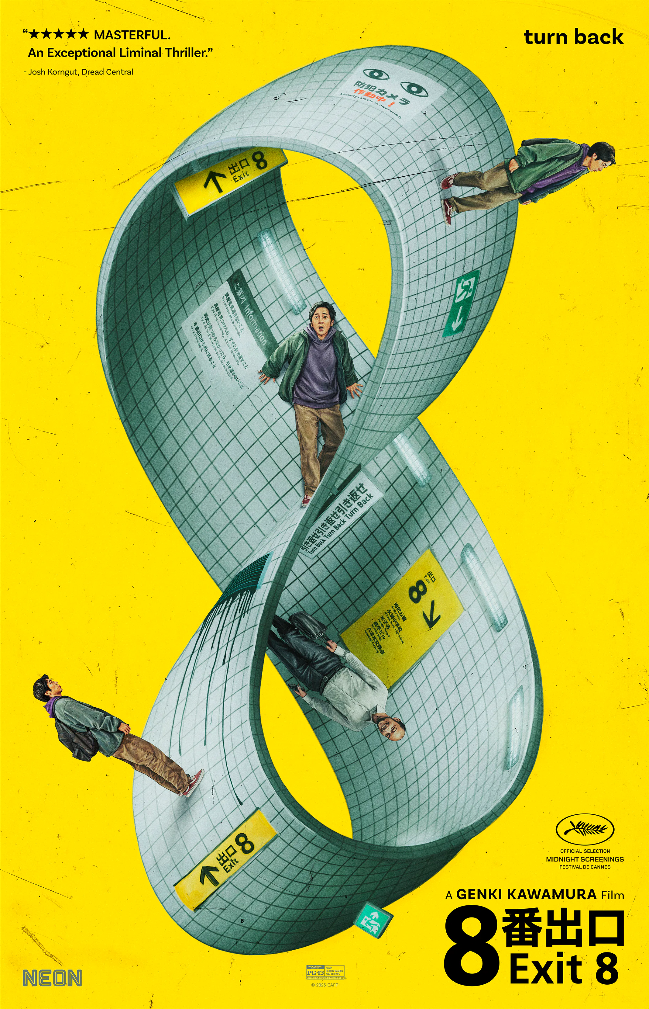 In het videospel De uitgang 8lopen spelers door een ondergrondse gang van een Japans metrostation. Als ze iets anders of vreemds in de gang opmerken – eventuele afwijkingen – moeten ze terugkeren, anders zal er iets gruwelijks gebeuren en zullen ze voor altijd in een lus blijven steken. Het is een bedrieglijk eenvoudig (en griezelig!) uitgangspunt voor een game, maar hoewel het spelen van ‘zoek de verschillen in een liminale ruimte’ voor een goede gameplay zorgt, biedt het niet echt een verhaal voor een volledige speelfilm. Toch weerhield dat Genki Kawamura er niet van om zich in de nachtmerrie-metro te wagen.