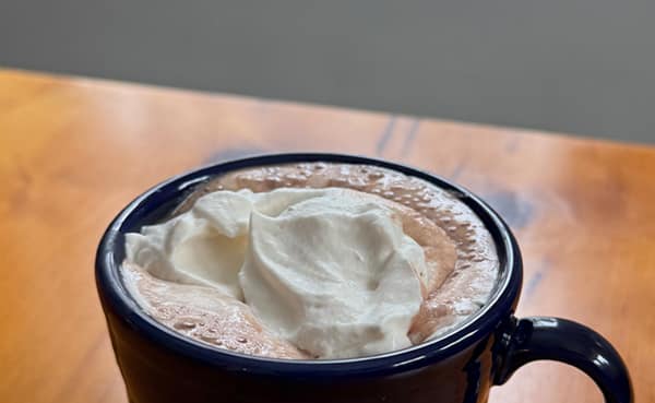 - Voeg gewenste extra’s toe. Mini marshmallows en/of slagroom passen er altijd goed bij. Een scheutje Amaretto tilt het nog verder naar een hoger niveau voor 21+ers.