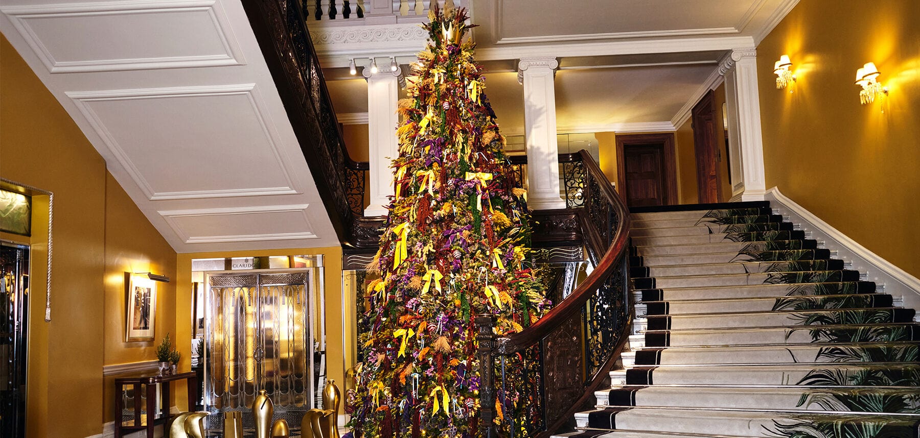 Legendarisch in het Londense circuit, de Claridge’s De kerstboom keert terug met hernieuwde pracht. Dit jaar Burberry‘S Daniël Lee neemt de teugels over en kleedt een 4,5 meter lange spar met overtollige Burberry-strikken: Victoriaanse linten van eenheid geregen in kasjmierzachte nostalgie. Wilde distels en gebladerte uit de Hooglanden stromen door de takken, koperen bellen glinsteren onder een gouden kroontopper, terwijl schaakstukplinten en dekens zich aan de voeten verzamelen als een dagdroom bij het haardvuur. De cheques van Burberry lopen door het hotel – portiers, liften, cocktails met een veelbetekenende knipoog. Een pop-up Scarf Bar maakt het plaatje compleet: erfgoed, ambacht en Kerstmis verpakt in smetteloze Britse lak. EP