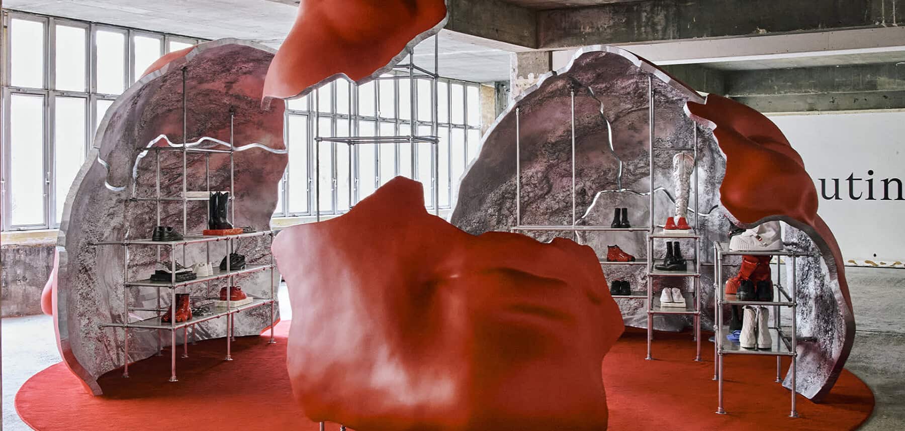 De creatief directeur werd zelf onderdeel van de beeldtaal en schilderde zijn gezicht en lichaam Louboutin rood voor de teasers die aan de onthulling van de collectie voorafgingen. Die verzadiging werd doorgevoerd in de presentatie, onthuld via een meeslepende tentoonstelling waarin de accessoires werden geplaatst in wat leek op een gigantisch, keramisch menselijk hoofd – natuurlijk rood geverfd – en in stukken gebarsten zodat de mode-pack naar binnen kon stappen en persoonlijk kon worden met de stukken. Naast 360 graden video- en beeldinstallaties was het effect intiem en enigszins desoriënterend, alsof de collectie was gerangschikt als een reeks gedachten die rechtstreeks uit de geest van de creatief directeur in kaart waren gebracht.