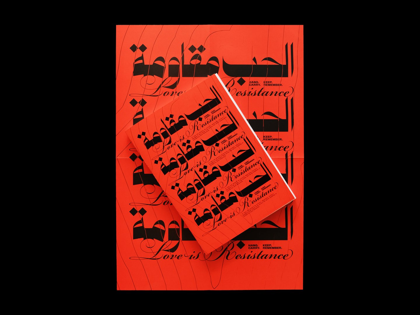 Als een uitscheurbaar boek, Liefde is weerstand is “ontworpen om bij elkaar te worden gehouden als een archief en om de posters te laten circuleren, over muren, straten en schermen te bewegen, waardoor de aanwezigheid buiten de pagina’s wordt uitgebreid”, vertelt Aya. “Die relatie tussen archief en actie, vasthouden en loslaten heeft het project vanaf het begin gevormd.” Het boek als object is ontworpen om een soort ‘dubbelleven’ te leiden: als object om vast te houden en als hulpmiddel voor beweging.