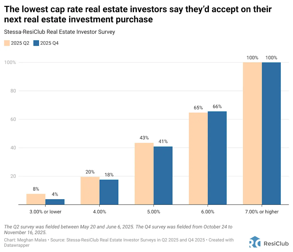 Het grote plaatje: ook al zegt bijna de helft van de beleggers dat ze hun portefeuilles willen laten groeien, zijn de hedendaagse kopers gedisciplineerd: ze dringen aan op een sterke cashflow, plafondrentes van of boven 6,00% en deals die zelfs bij een hypotheekrente van 6,00% haalbaar zijn. Het resultaat is een beleggerslandschap dat nog steeds expansiegericht is, maar veel selectiever en operationeel gerichter dan in voorgaande jaren.