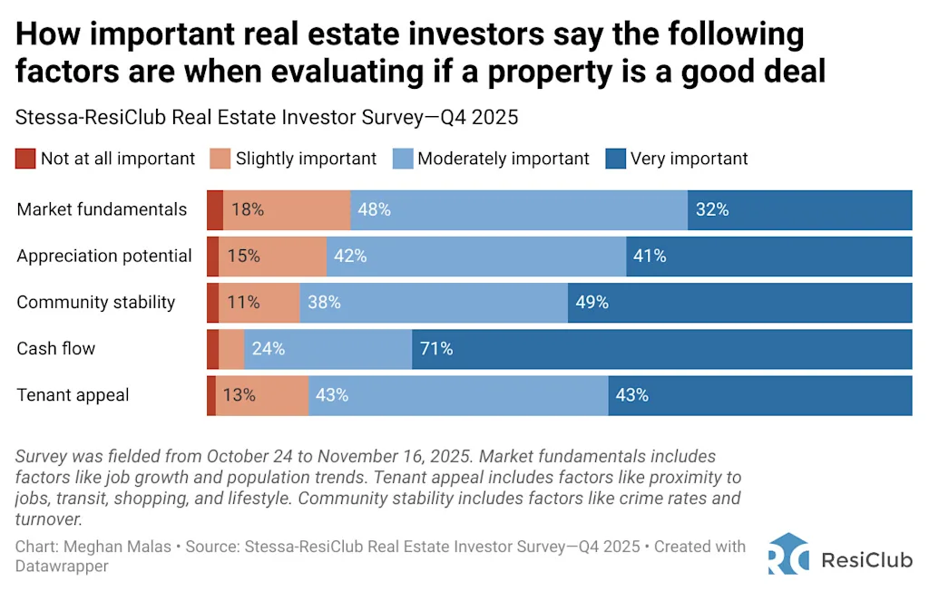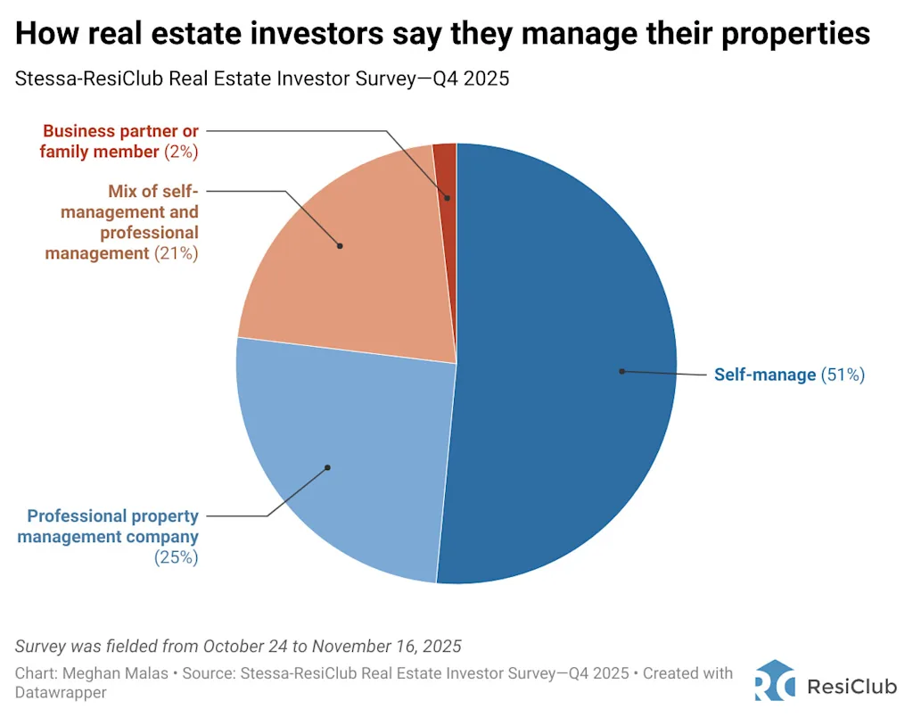 Beleggers die ten minste één eengezinsbelegging bezitten, kwamen in aanmerking om te reageren op de Stessa-ResiClub Enquête voor vastgoedbeleggers – vierde kwartaal 2025, uitgevoerd tussen 24 oktober en 16 november. In totaal hebben 211 eengezinsbeleggers/verhuurders de enquête ingevuld.