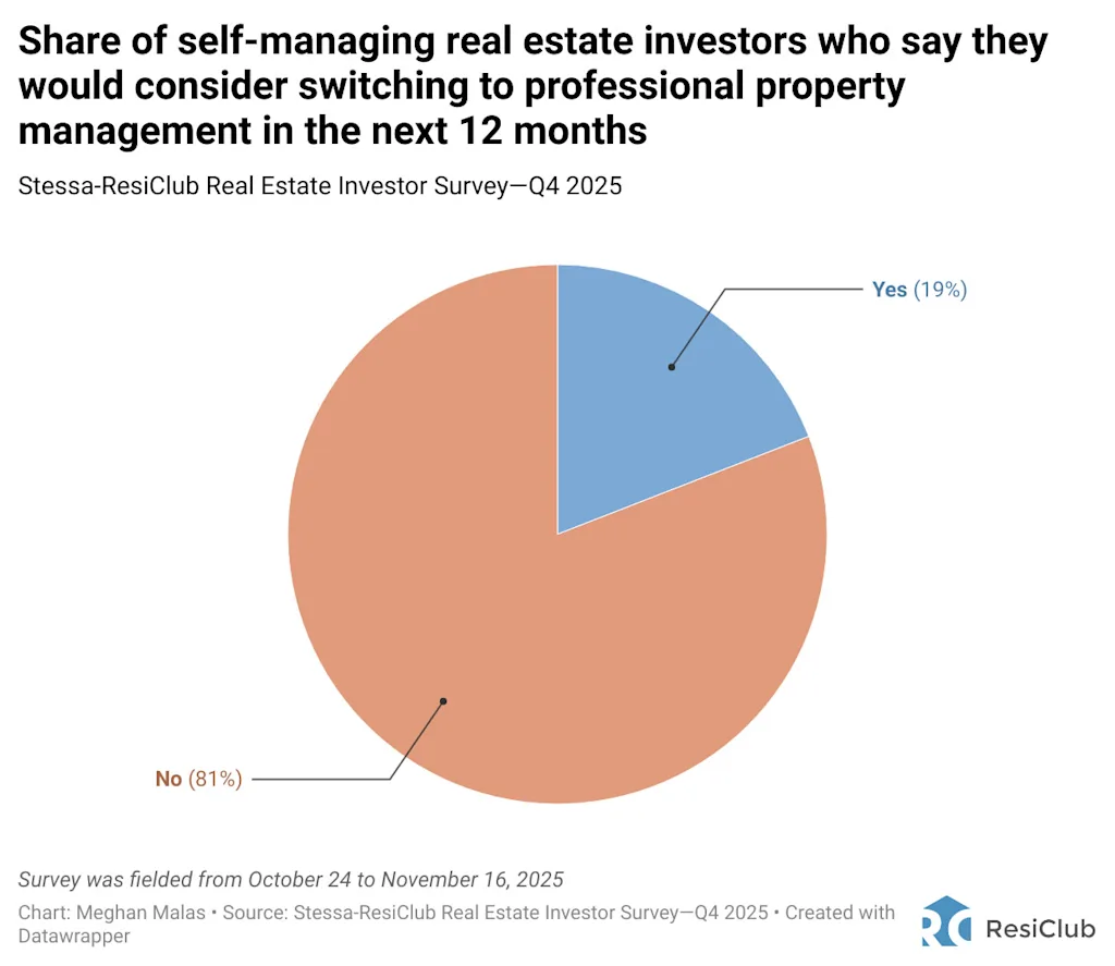 - 19% van de vastgoedbeleggers die momenteel zelfbeheer geven, zeggen dat ze zouden overwegen om in de komende twaalf maanden over te stappen op professioneel vastgoedbeheer.
