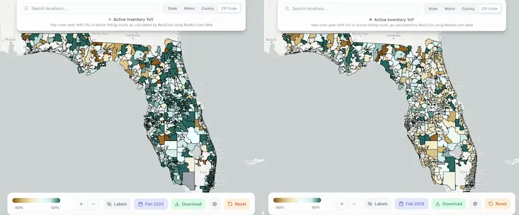 - Aanbodelasticiteit. In tegenstelling tot veel huizenmarkten in het noordoosten en middenwesten, kent Florida een hoger niveau van woningbouw en meergezinsbouw. Toen dat nieuwe aanbod op de markt kwam in de post-pandemische huizenhausse waarin de betaalbaarheid onder druk stond, gebruikten bouwers waar nodig grotere aanpassingen aan de betaalbaarheid – zoals het opkopen van hypotheekrentes en prijsverlagingen – om het te verplaatsen. Dat hielp de wederverkoopmarkt in Florida verder af te koelen door kopers die anders misschien bestaande huizen hadden gekocht, naar nieuwbouw te trekken. Als gevolg hiervan zorgde dit voor extra opwaartse druk op de wederverkoopvoorraad van Florida nadat de pandemie op de huizenmarkt was geëindigd.