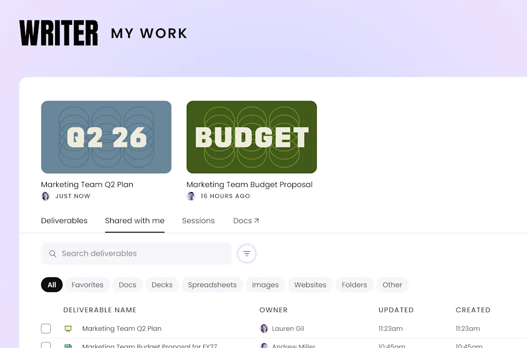 “Het is ontworpen om zo eenvoudig mogelijk te zijn”, zegt Doris Jwo, VP Product bij Writer. “Je kunt dus beginnen met zoiets eenvoudigs als een prompt van één zin.”